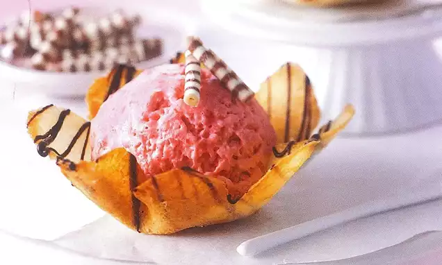 Baissez la température du gaufrier à température moyenne. Huilez le gaufrier. Versez l'équivalent d'une cuillère à soupe de pâte dans le gaufrier et faites cuire jusqu'à ce qu'elle soit dorée. Formez des cônes avec la pâte immédiatement après l'avoir sortie du gaufrier. Répétez l'opération jusqu'à obtention d'environ 12 cônes. Laissez refroidir.